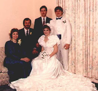 I dance with my dad and when the song ends I follow him off the floor. This person steps in front of me and says something like, "Do you want to dance later?". I think I say, "Okay" or something equally flirtatious like that. He moves and I go sit down. Later, he does ask me to dance. I still remember the look on his face when he asks how old I am. Shock. When you are 5' 10" at 14, people always assume you are older than you are.He asks me on a date anyway, even asks my parents if it is okay. So I go and so it begins. I doubt my parents could have, even in their wildest imaginings, predicted where we would end up a few short years later. Saying vows in the front of a church during Spring Break of my senior year of high school. Best Spring Break ever.